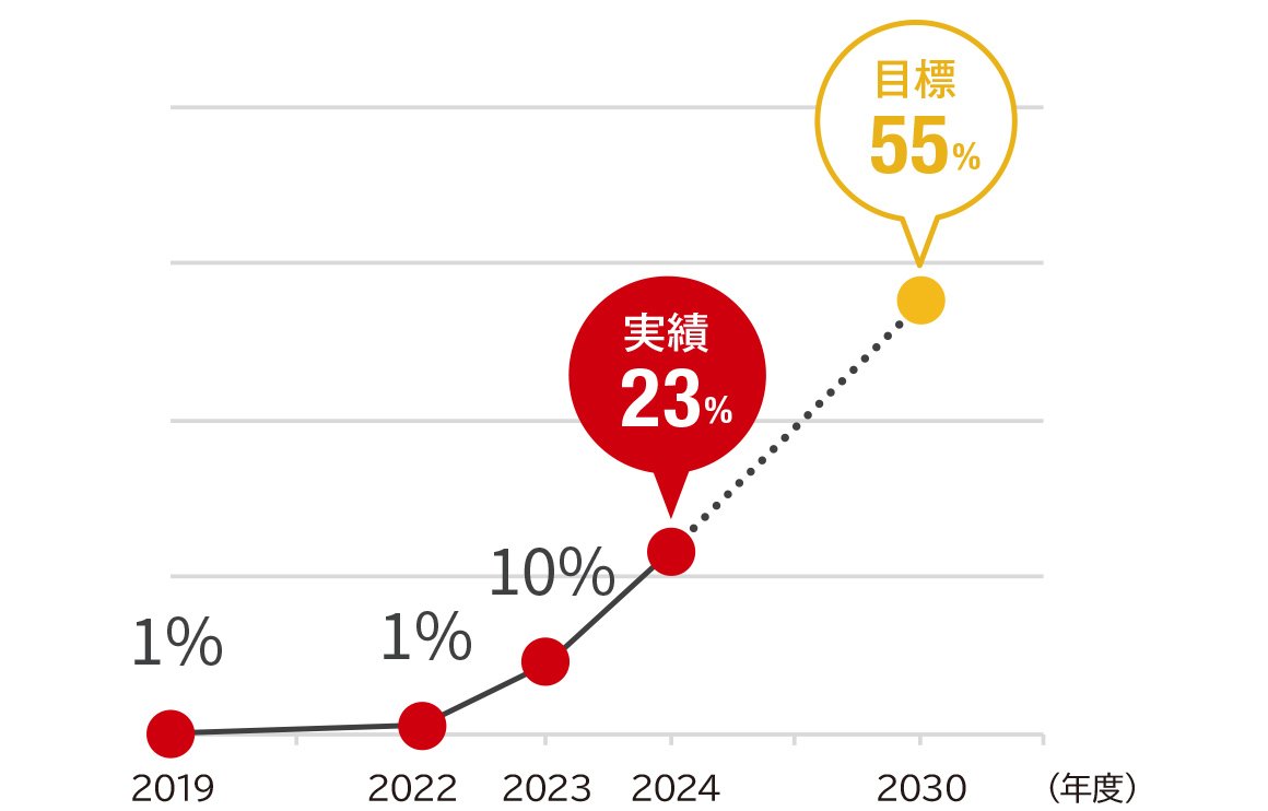 当社は2030年度の環境目標達成に向け、再生可能エネルギー導入を拡大しています。
