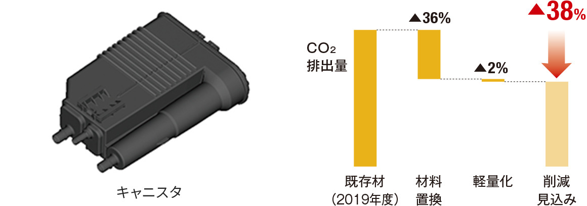 主力製品であるキャニスタでは、2019年度比で約36%のCO2排出量削減の目途が立ちました。