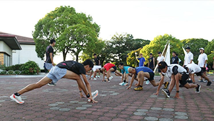 大府市・東浦町主催の陸上競技部による「ランニング教室」では地域の小学生約200名に、楽に走るための動きや、トレーニングの仕方などを教えています。