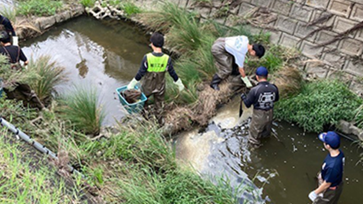 大府市が実施している「クリーン アップ ザ ワールド イン大府」(石ヶ瀬川・延命寺川などで開催)に合わせ、共和東自治区が開催している「鞍流瀬川せせらぎ清掃活動」に毎年、協力・参加しています。当日は、自治区をはじめ、市役所、社会福祉協議会、中学校など、地域住民の方々と一緒に汗を流しました。
