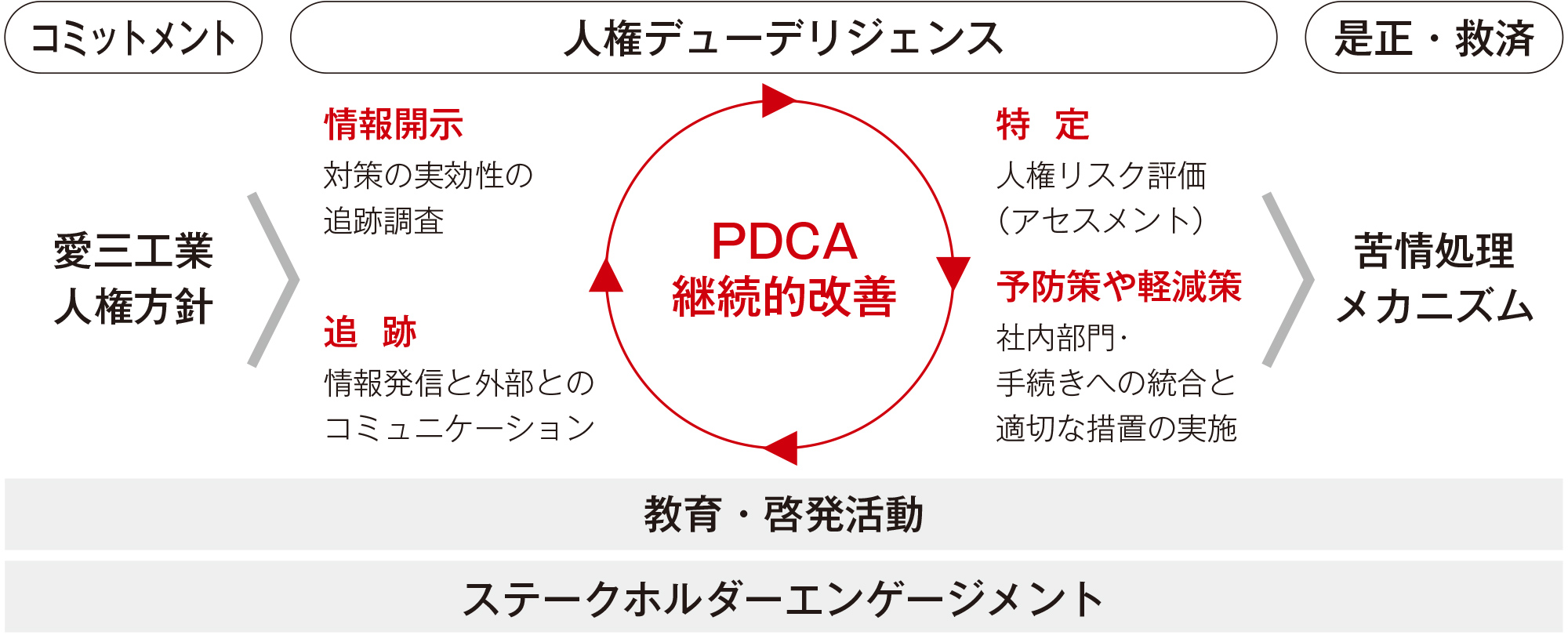 「愛三工業人権方針」に基づく取り組みを実践するために、国連の「ビジネスと人権に関する指導原則」に則り人権デューデリジェンスを実施しています。