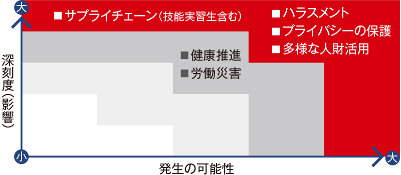社内のアンケート調査や法務省・外部評価機関の調査項目を基に愛三グループの顕著な人権課題を特定し、優先的に取り組みを進めています。