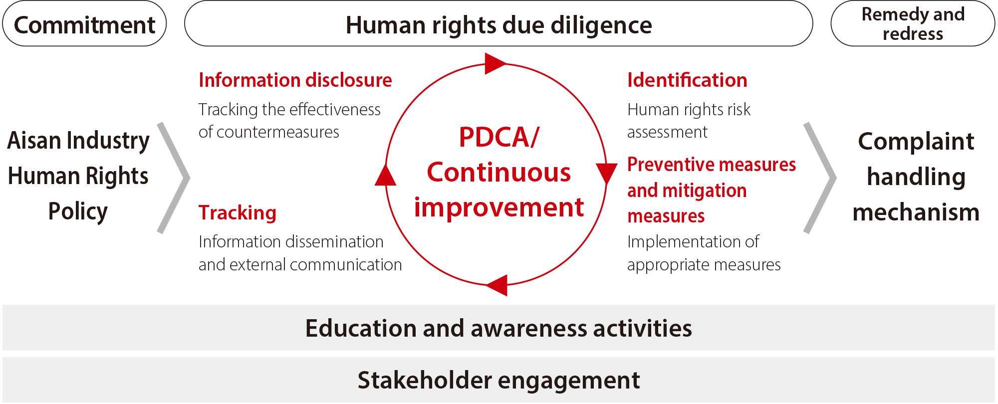 We apply this policy to executives and employees across the entire Aisan Group, and will continue to engage in dialogue with all stakeholders including business partners, working in tandem to promote human rights initiatives based on this policy.